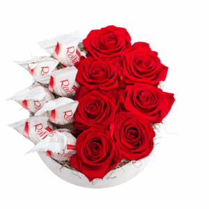 Luxusný box so stabilizovanými červenými ružami a obľúbenými cukrovinkami Raffaello. Elegantný darček bez potreby starostlivosti, ktorý vydrží krásny dlhé mesiace a poteší pri každej výnimočnej príležitosti.