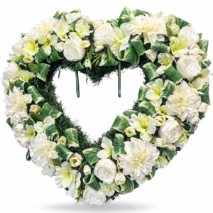 79.90 € s DPHDôstojné umelé smútočné srdce v jemných bielo-zelených tónoch je symbolom úcty, lásky a tichej spomienky. Vhodné na poslednú rozlúčku, hrob aj obradnú sieň. Možnosť doručenia v Košiciach a okolí.