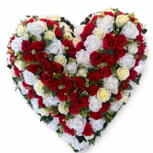 49.90 € s DPHSmútočné umelé srdce z bielych a zelených kvetov je dôstojným symbolom úcty, lásky a tichej spomienky na zosnulého. Trvácny veniec v tvare srdca je starostlivo aranžovaný z kvalitných umelých kvetov, zachováva si svoj vzhľad počas celej pietnej udalosti a je určený na umiestnenie na stojan do obradnej siene, domu smútku alebo k miestu poslednej rozlúčky.