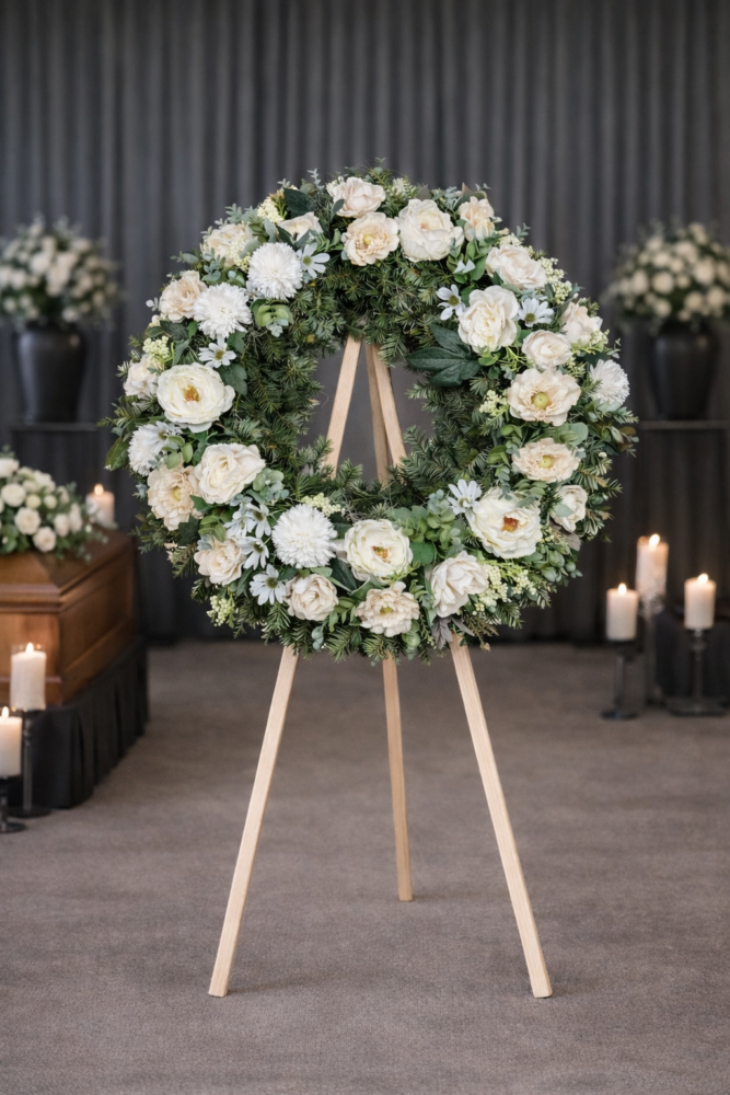 Veniec je možné doplniť o smútočnú stuhu s Vami zvoleným rozlúčkovým textom alebo odkazom.